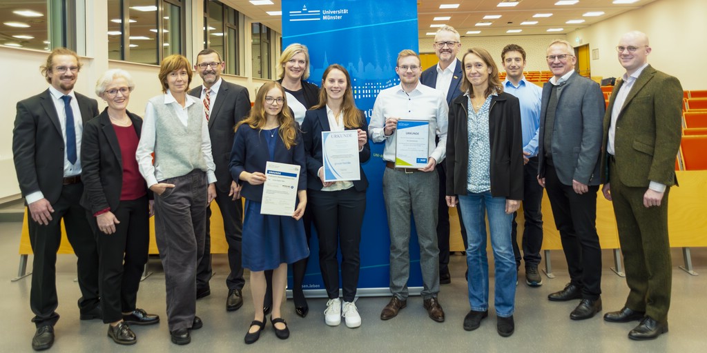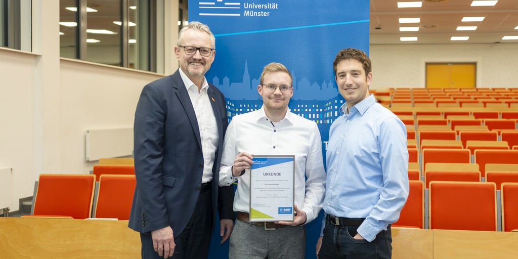 Vergabe des Masterpreises an Nico Spreckelmeyer (mitte)© Uni MS - Peter Dziemba