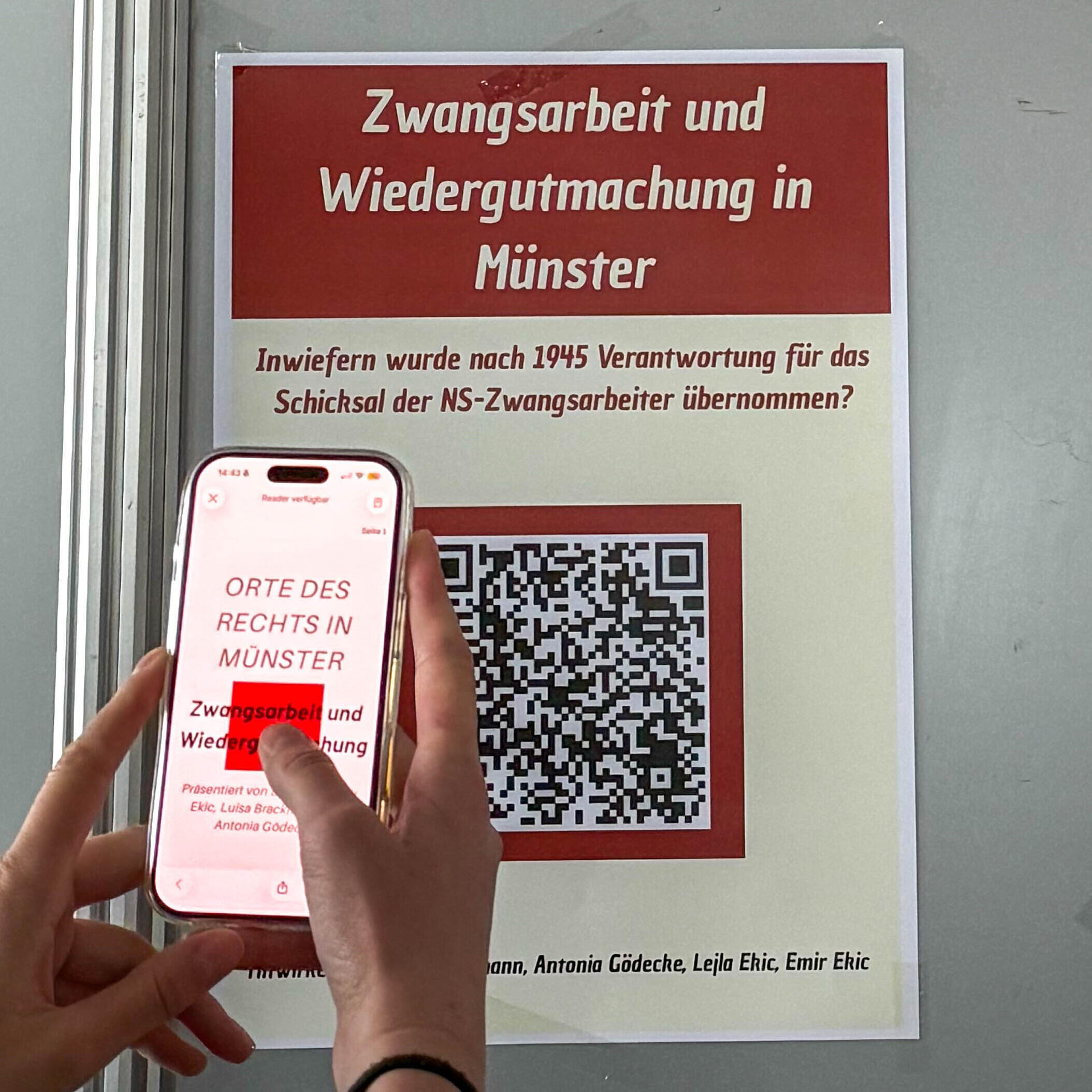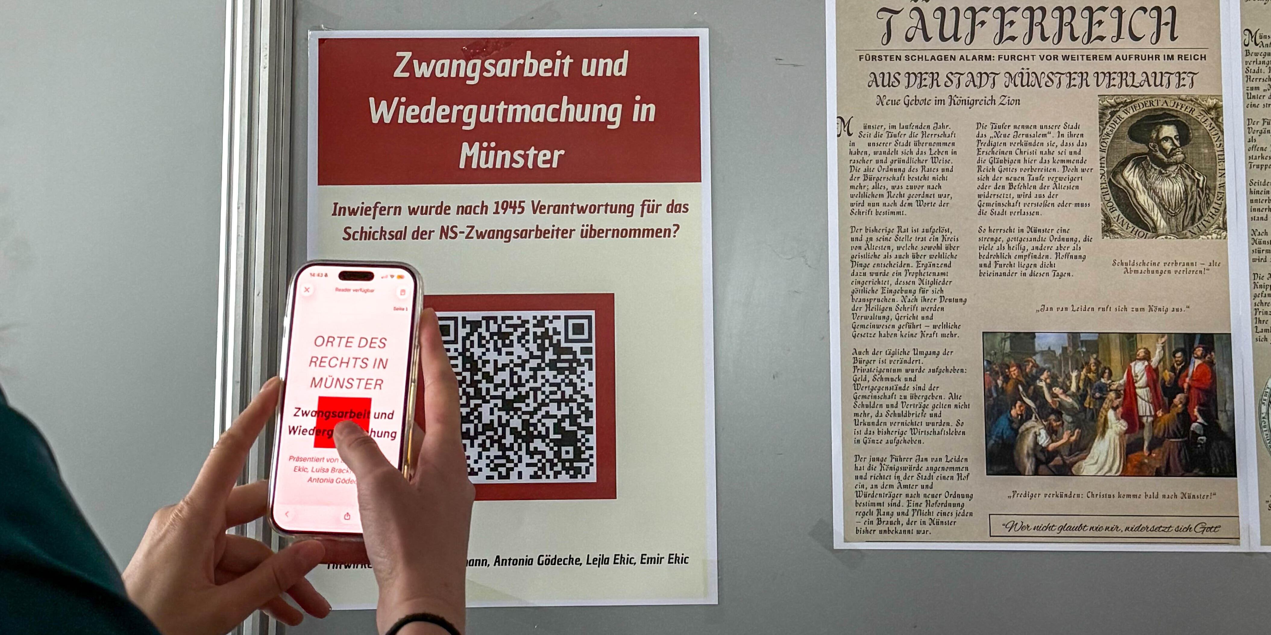 Mit der Geschichte des Rechts in Münster setzten sich im Schuljahr 2025/26 die Schüler:innen des Zusatzkurses Geschichte der Q2 der Gesamtschule Münster Mitte auseinander. Der Kurs fand in Kooperation mit dem Käte Hamburger Kolleg „Einheit und Vielfalt im Recht“ statt.