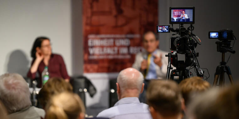 In größeren Transferprojekten arbeiten wir mit Schulen zusammen, greifen in den städtischen Raum aus oder suchen den Brückenschlag zwischen Wissenschaft und darstellender Kunst. Unsere regelmäßigen öffentlichen Diskussionsveranstaltungen widmen sich aktuellen oder historischen Themen und wenden sich an ein vielfältiges Publikum. Daneben berichten wir in unterschiedlichsten Formaten der Wissenschaftskommunikation fortlaufend über die Arbeit am Kolleg: in Pressemitteilungen und Medienbeiträgen, auf dem EViR-Blog und auf unseren Social-Media-Kanälen, in Videos, im Newsletter sowie in unserem Jahresbericht.