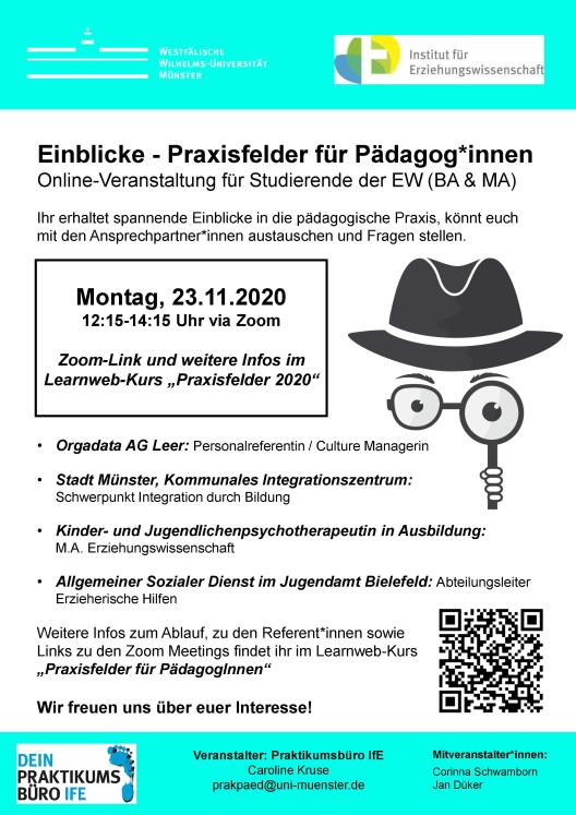 Einladung zur Veranstaltung "Praxisfelder für Pädagog*innen" am 23.11.2020