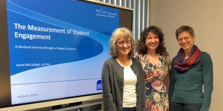 Mit der Disputation hat Laura McCullagh (Arbeitsgruppe Forschungsmethoden / Empirische Bildungsforschung) ihr Promotionsverfahren am 5. Februar 2026 erfolgreich mit dem Prädikat summa cum laude abgeschlossen. In ihrer Arbeit mit dem Titel „The Measurement of Student Engagement: A Critical Examination of Operational Definitions and the Development of German-Language Scale“ widmete sie sich der Untersuchung des Konstrukts „Student Engagement“, das kognitive, behaviorale und affektive Dimensionen der Beteiligung im Unterricht erfasst. Obwohl es sich um ein im englischsprachigen Raum weit verbreitetes Konstrukt handelt, sind die Definition und Operationalisierung von Student Engagement umstritten. In ihrer Dissertation analysiert Frau McCullagh die theoretischen Unklarheiten, die zu der uneinheitlichen Operationalisierung des Konstrukts beitragen, und entwickelt Lösungsansätze. Aufbauend auf einer qualitativen Inhaltsanalyse englischsprachiger Selbstberichtskalen entwickelte sie anschließend ein deutschsprachiges Messinstrument. Im Rahmen einer konfirmatorischen Faktorenanalyse erzielte das a priori postulierte Messmodell gute Fit-Werte. Die Ergebnisse von Messinvarianz- und Item-Analysen sowie eine evaluative Inhaltsanalyse kognitiver Interviews bestätigen die Konstruktvalidität der Skala für die Verwendung mit Schüler:innen der Klassen 4 bis 6. Mit der Publikation der Dissertationsschrift wird die Skala für wissenschaftliche Zwecke frei verfügbar sein.