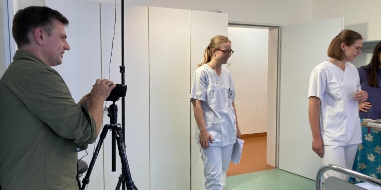 Der Videodreh wurde bereichert durch die Arbeit mit echten Schauspieler:innen und dem Team des Studienhospitals. Vielen Dank für euere professionelle Unterstützung Johanna Kollet und Juliane Schopf.