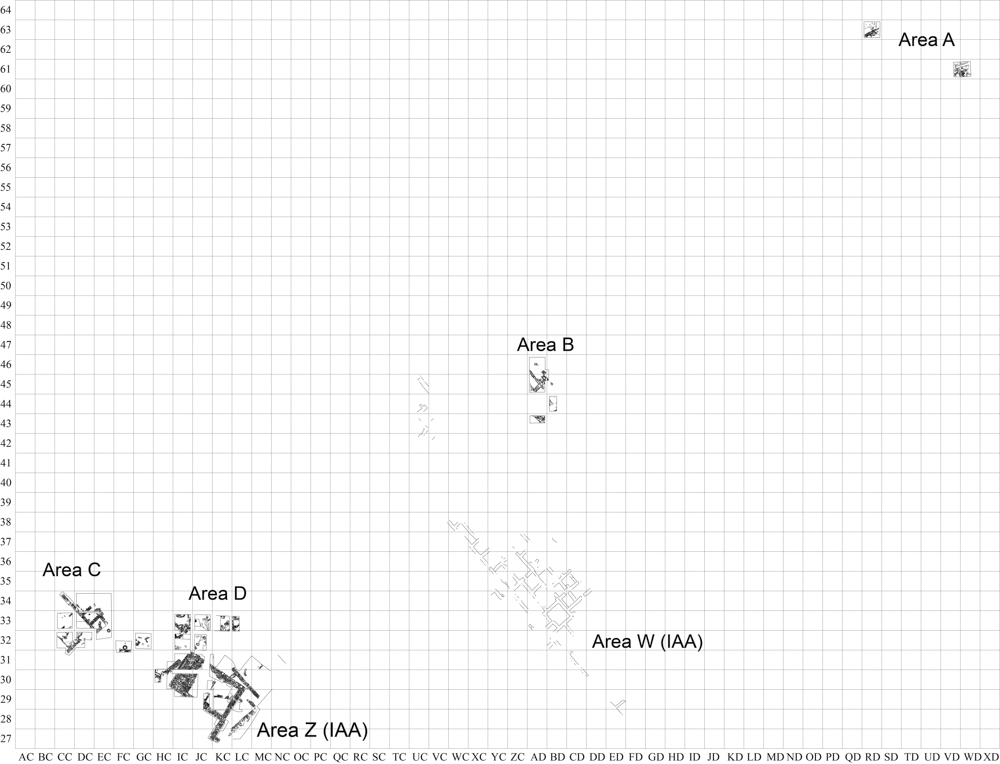 seasons of excavations four areas (A‒D) were explored (Fig.