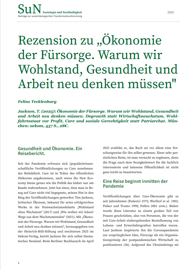 Tecklenburg, F. (2025). Rezension zu „Ökonomie der Fürsorge. Warum wir Wohlstand, Gesundheit und Arbeit neu denken müssen". Soziologie Und Nachhaltigkeit. https://doi.org/10.17879/sun-2025-9160