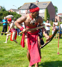 Für den von der Gruppe traditionell dargestellten Kriegstanz sind verschiedene Waffen, z.B. Schwerter (parang) oder Speere (tombak) notwendig, die dem zeremoniellen Tanz noch mehr Wirkung geben.