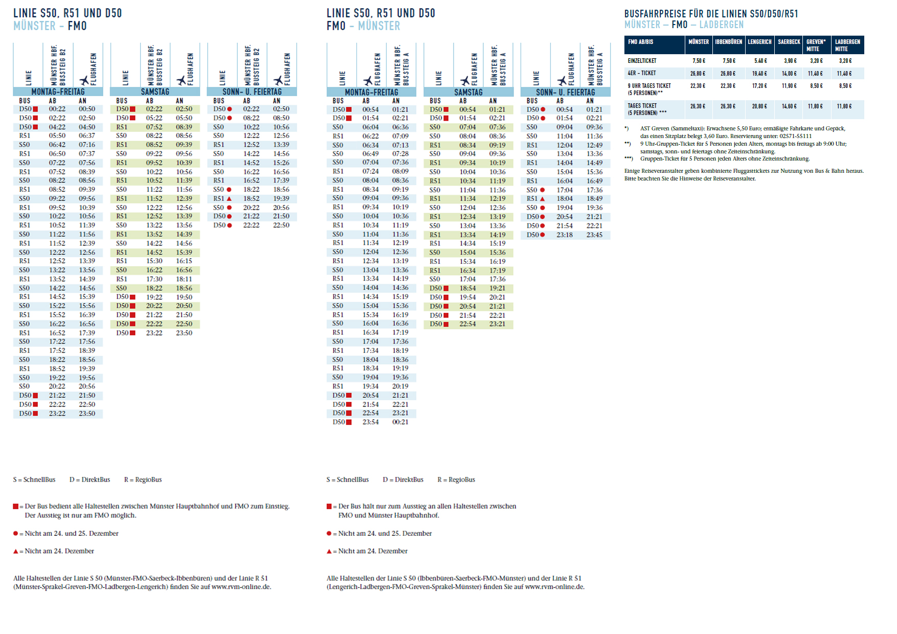 Should you choose to arrive via aeroplane, (FMO) take a bus line (S50, R51, D50) to Münster main station (General Time Schedule). Please look at the tips under the section 'by bus' next.