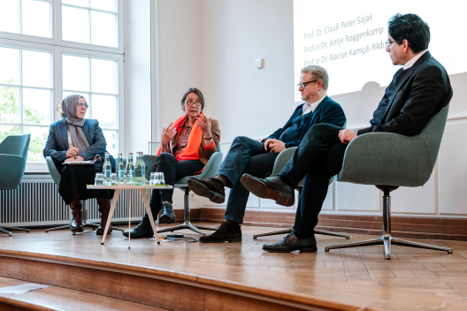 Den Abschluss der Tagung bildete eine Podiumsdiskussion, in der Perspektiven aus Politik, Wissenschaft und Praxis zusammengeführt wurden. Es diskutierten Jakim Essen (Ministerium für Schule und Bildung des Landes Nordrhein-Westfalen), Prof. Dr. Mouhanad Khorchide (Universität Münster), Reyhan Yıldız (Lehrkraft und Fachleiterin für den islamischen Religionsunterricht), Thomas Schlüter (Bildungsdezernent und Leiter des Pädagogischen Instituts der Evangelische Kirche von Westfalen) sowie Reinhard Schulte (Schulleiter des Gymnasiums zum Altenforst in Troisdorf). Im Austausch wurden insbesondere Fragen der strukturellen Verankerung des Faches, der Qualifizierung von Lehrkräften, der konkreten unterrichtlichen Umsetzung sowie der Weiterentwicklung im Kontext religiöser Vielfalt thematisiert.