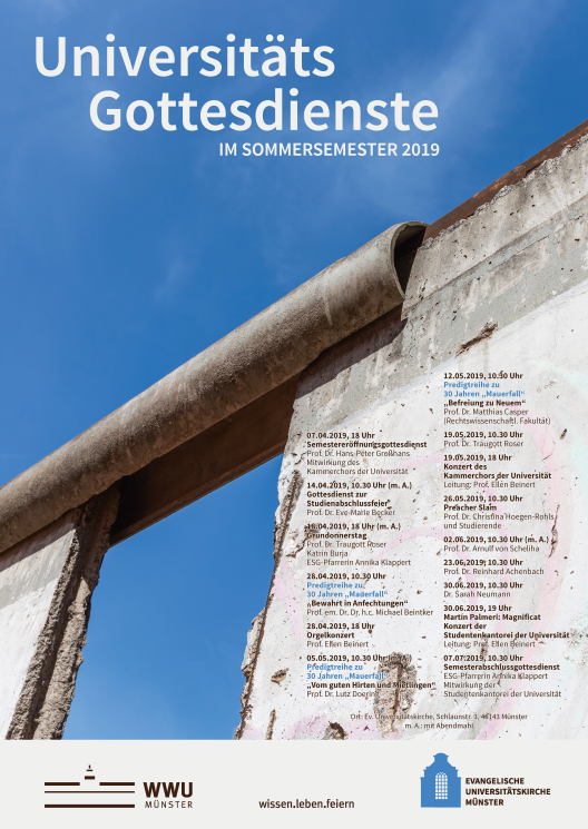 Bitte beachten Sie, dass in der Universitätskirche keine Amtshandlungen (Trauungen/Taufen) stattfinden können. Bitte wenden Sie sich dazu an den Evangelischen Kirchenkreis Münster. Vielen Dank!