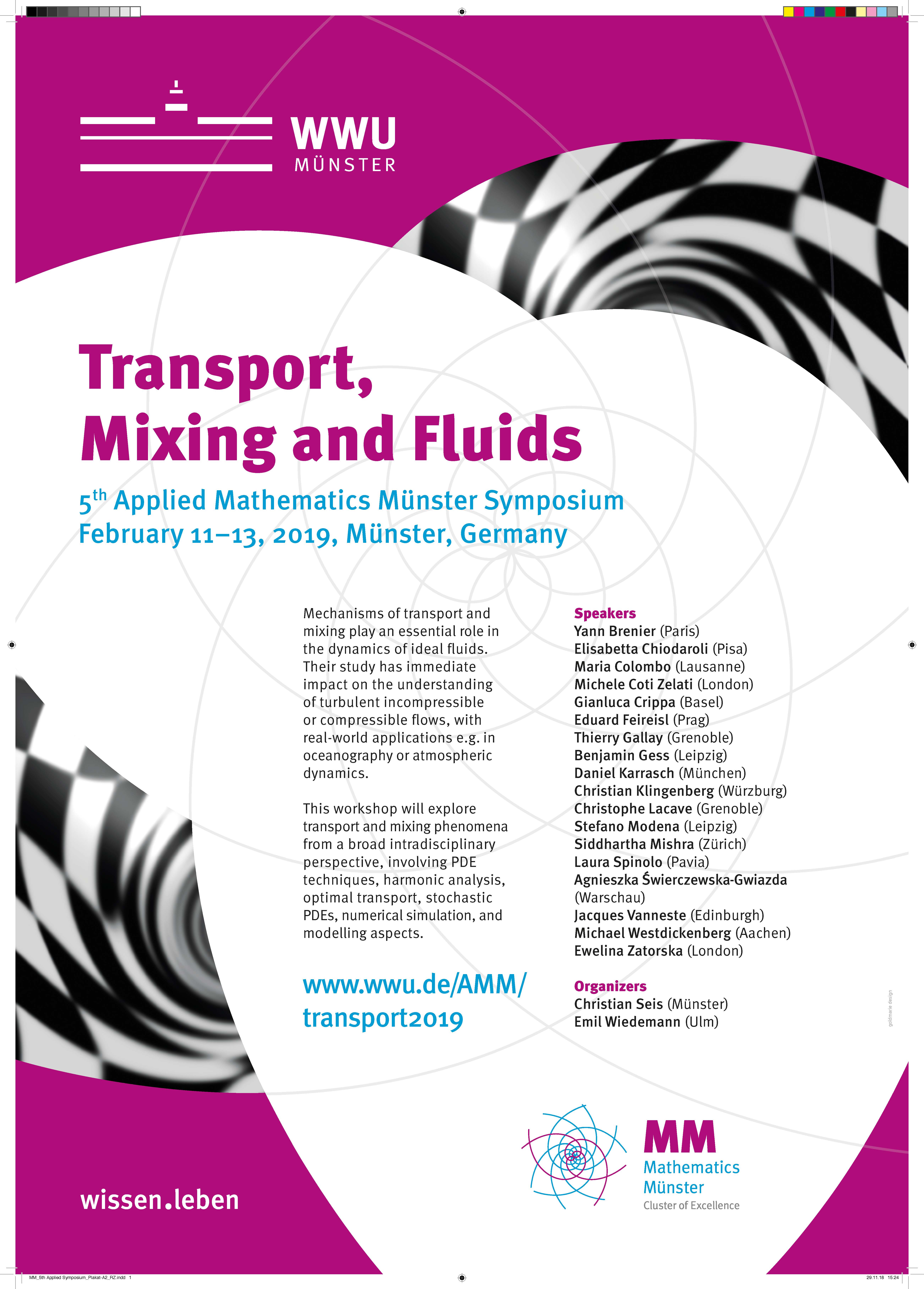 This workshop will explore transport and mixing phenomena from a broad intradisciplinary perspective, involving PDE techniques, harmonic analysis, optimal transport, stochastic PDEs, numerical simulation, and modelling aspects.