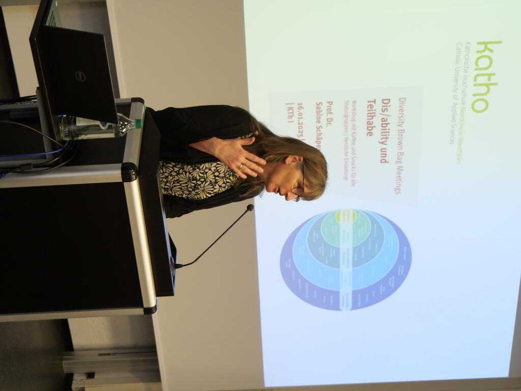 Wie können wir Teilhabe an unserer Fakultät wirksam gestalten? Diese Frage stand im Mittelpunkt des dritten Diversity Brown Bag Meetings am 16. Januar 2025. Die Kommission für Gleichstellung und Diversity hatte dazu Prof. Dr. Sabine Schäper von der Katholischen Hochschule NRW eingeladen, die mit ihrem Vortrag „Dis/ability und Teilhabe als bildungspolitische Herausforderung im Kontext Hochschule“ Impulse setzte.