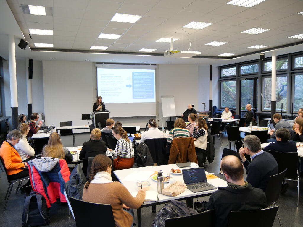 Vortrag und Gruppenarbeitsphasen wechselten sich beim Brown Bag Meeting im KTh I ab.© KTF | Dekanat