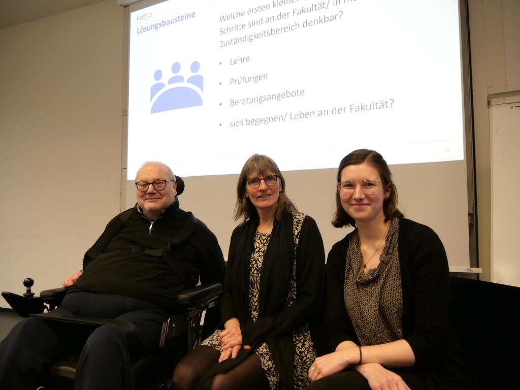 Prof. Dr. Dr. Bernhard Nitsche, Prof. Dr. Sabine Schäper und die wissenschaftliche Mitarbeiterin Theresa Focke. © KTF | Dekanat