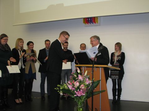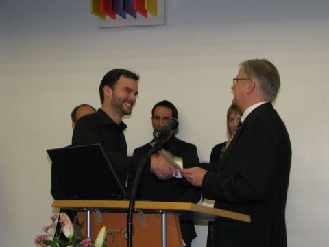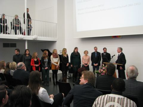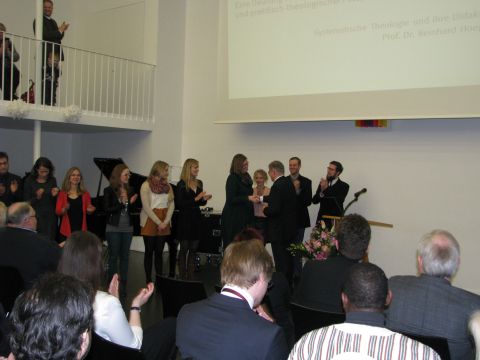 Nach einem Festgottesdienst unter der Leitung von Prof. Klaus Müller begrüßte der Dekan, Prof. Reinhard Feiter die zahlreichen Anwesenden. In seiner Ansprache stellte Feiter vor allem heraus, das an unserer Fakultät herausragende, interessierte und engagierte Studierende zu finden sind, die für die politisch-theologische Verortung der Fakultät Zeichen setzen.