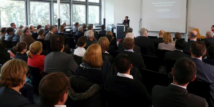 Im darauf folgenden Festvortrag, der von Andree Burke eingeleitet wurde, sprach Prof. Dr. Christoph Theobald zum Thema „Brennendes Interesse am Alltag der Menschen. Zum theologischen Hintergrund ‚Leben zeugender Pastoral‘“, in deren Zentrum die ‚pastorale d’engendrement‘ stand. Theobald stellte die „wechselseitige Beziehung von Leben und Glauben“ als konstitutiv für die Pastoralität der Kirche dar, sofern diese Pastoralität „nicht nur der Ausgangs- oder Zielpunkt theologischer Reflexion, sondern ihr eigentlicher historischer Raum“ ist. Im alltäglichen Zeugnis wird der Glaube gezeugt, der ein Glaube an das Leben ist: „Allerdings entsteht eine solche, nie ein für alle Mal gewonnene elementare Glaubens-‚Überzeugung‘ nur dann in jemandem, wenn ihm ein ‚Es lohnt sich wirklich‘ von einem Mitmenschen glaubhaft zugesprochen wird“. So zeigte Theobald, dass erst durch ‚brennendes Interesse‘ dieser Zuspruch ernsthaft möglich wird, weshalb eine ‚Leben zeugende Pastoral‘ nicht von fernen Idealen, sondern vom konkreten ‚Alltag der Menschen‘ ausgehen sollte.