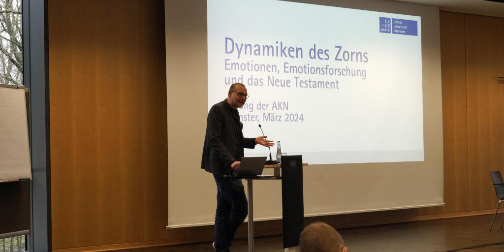 Die etwa 80 Teilnehmenden aus Deutschland, Österreich und der Schweiz hatten sich bei ihrer letzten Biennaltagung 2022 in Wiesbaden dazu entschlossen, in Münster Affekten und Emotionen im Neuen Testament nachzugehen. Dieses Thema wurde in mehreren Vorträgen entfaltet: Nils Neumann (Hannover) führte am Beispiel des Zorns in die neutestamentliche Emotionsforschung ein, während Eve-Marie Becker (Münster) zu Medialisierung von Emotionen bei Paulus, Uta Poplutz (Bamberg) zum Umgang mit Emotionen im Johannesevangelium und Wilfried Eisele zu Freimut und Furcht im Hebräerbrief referierten und somit einzelne Textbereiche des Neuen Testaments vertieft in den Blick nahmen. Im Rahmen eines fakultätsöffentlichen Abendvortrags erläuterte Martina Wagner-Egelhaaf (Münster) aus der Perspektive der Deutschen Literaturgeschichte gegenwärtige Herausforderungen der Emotionsforschung, was zu einer angeregten interdisziplinären Diskussion führte.
