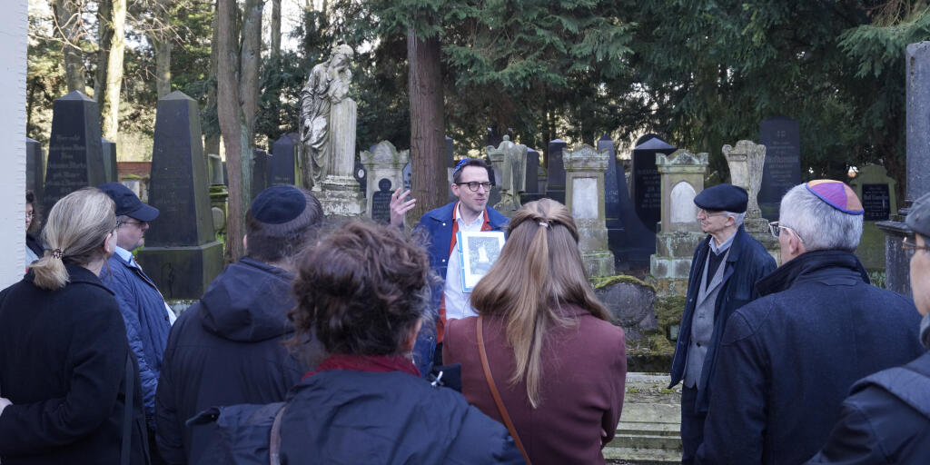 Ludger Hiepel erläutert die vielschichtige Geschichte des Jüdischen Friedhofs© IBET | Judit Luttermann