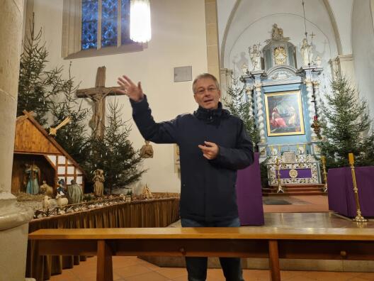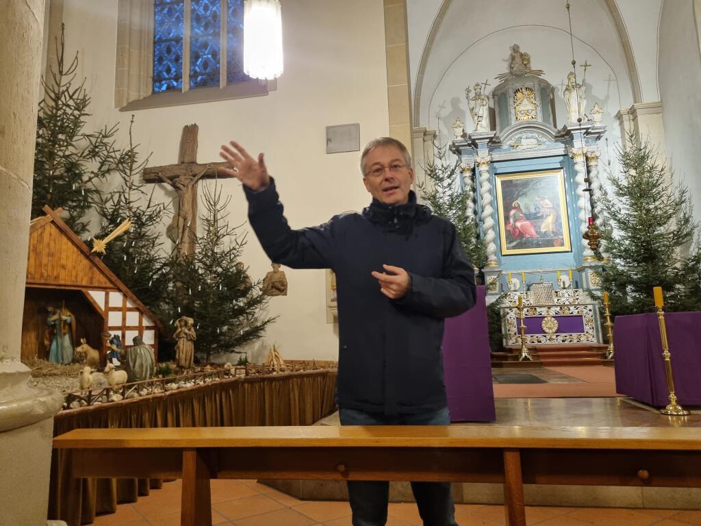 ACHIBI-Mitarbeiterin Johanna Döller gestaltete in diesem Jahr das Programm der Weihnachtsfeier unserer Arbeitsstelle: Sie präsentierte die Ergebnisse ihres Forschungsprojekts in St. Lambertus in Ascheberg. Sie integrierte Gemeindemitglieder, den Pfarrer und die Küsterin in das Projekt und entwickelte gemeinsam verschiedene Hörspielstationen zu Orten und Kunstwerken im Kirchenraum, die digital abgerufen werden können.