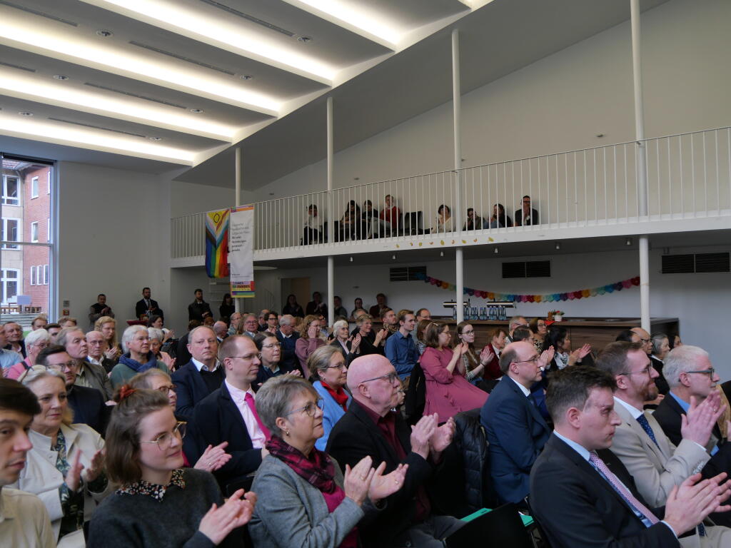 Viele Gäste sind am 31. Oktober in Münster zusammengekommen, um mit den Absolvent:innen der Katholisch-Theologischen Fakultät das Ende ihres Studiums zu feiern. Gut 120 Personen besuchten den Festakt in die Aula der Katholischen Studierenden- und Hochschulgemeinde (KSHG), darunter zahlreiche Familienangehörige, Freund:innen sowie Mitglieder der Fakultät.