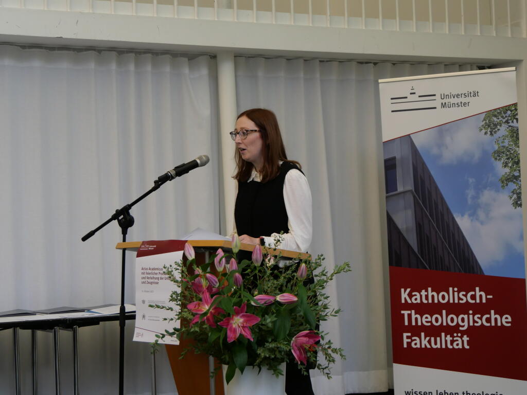 Den Promotionsvortrag hielt Dr. Julia van der Linde über moraltheologische Überlegungen zu Verletzlichkeit und Macht in der (digitalen) Psychotherapie.© KTF | Dekanat