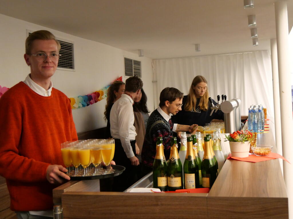 Dank der tatkräftigen Unterstützung durch studentische Hilfskräfte konnte die Feier mit einem fröhlichen Sektempfang ausklingen.© KTF | Dekanat