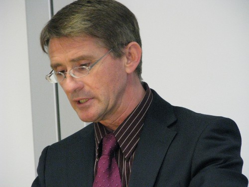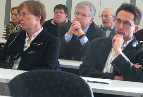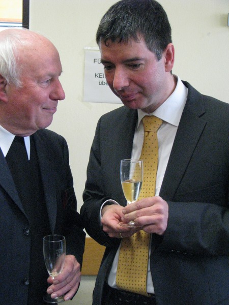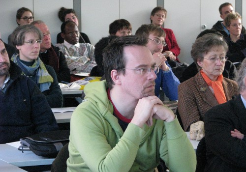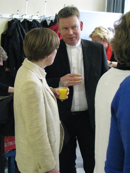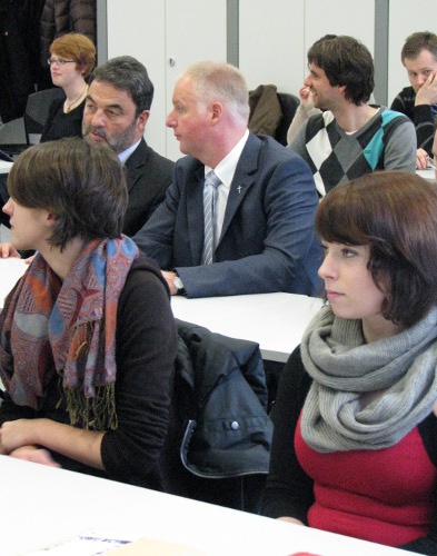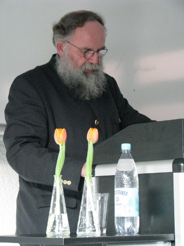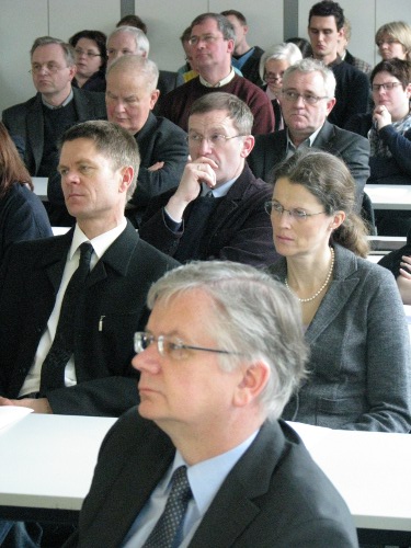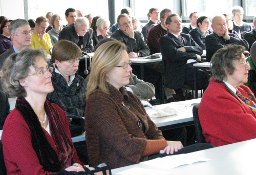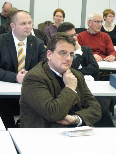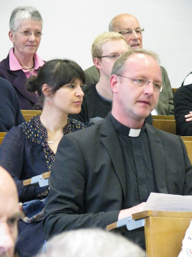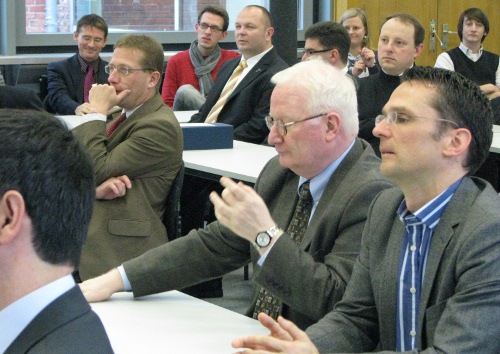 Privatdozent Dr. Peter Kohlgraf18.4.2011. Nicht nur viele Mitbrüder aus dem Erzbistum Köln waren angereist, um Peter Kohlgraf zu hören. Auch der Religions-Leistungskurs des Mädchen-Gymnasiums „Marienberg“ aus Neuss war da. Und der musste lächeln, als Peter Kohlgraf das Internet als „Machtwort des Zeitgeistes“ benannte und ausführte: „Die meisten Schülerinnen schauen zwischendurch immer mal rein, was sich auf Facebook tut. Obwohl sie eigentlich gar kein Handy dabei haben dürften!“