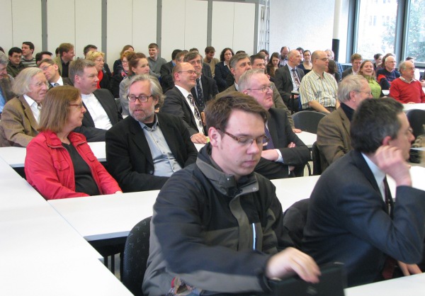 Zuvor hatte Dekan Klaus Müller seinen Namensvetter und Amtskollegen herzlich im Namen der Fakultät begrüßt. Die Ansprache können Sie hier lesen. Die gesamte Antrittsvorlesung, die mit großem Beifall aus dem Publikum endete, wird an späterer Stelle in einer wissenschaftlichen Publikation veröffentlicht.