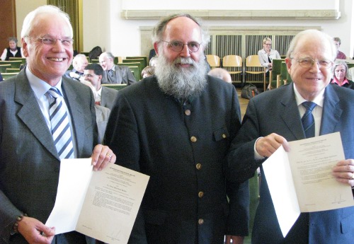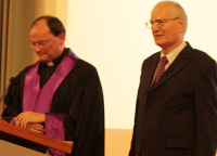 Ehrendoktorwürde für Prof. em. Dr. Thomas PröpperDer Fundamentaltheologe und Dogmatiker Prof. Dr. Thomas Pröpper (rechts) hat im Dezember 2011 die Ehrendoktorwürde der Katholisch-Theologischen Fakultät der Universität Freiburg erhalten. Er war von 1988 bis zu seinem krankheitsbedingten Ausscheiden im Jahr 2003 Professor für Dogmatik und theologische Hermeneutik an unserer Fakultät.