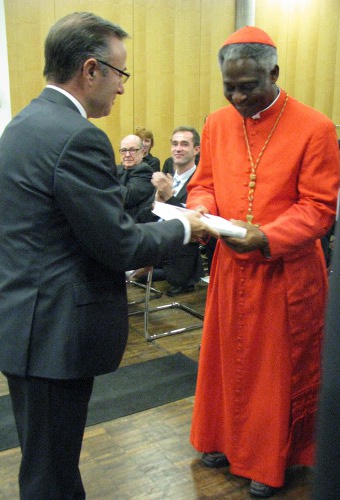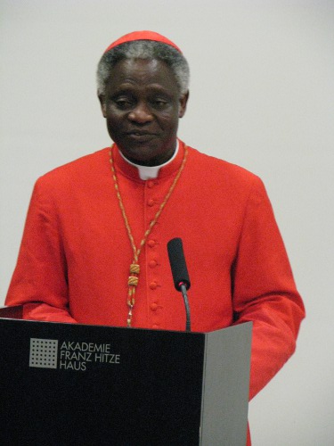 Für den Festvortrag war Kardinal Peter Turkson aus Rom angereist. Der Ghanaer, der inzwischen Präsident des Päpstlichen Rates für Gerechtigkeit und Frieden ist, sprach über den Zusammenhang von Mission und Gerechtigkeit. Er stellte dabei heraus, dass Gerechtigkeit ein "Herzstück des biblischen Erbes" ist. Am Beispiel der Afrika-Synoden 1994 und 2009 konnte er zeigen, dass das konkrete Engagement für soziale Gerechtigkeit mittlerweile Kern aller missionarischen Arbeit ist. "Wie der Heilige Vater bei der Eröffnung der Synode sagte, wäre es ideologisch, nur Vorschläge zu machen, ohne zu handeln." Gleichzeitig dürfe man Pastoral nicht mit Politik verwechseln und es sei bedauernswert, wenn Priester ihre Gemeindearbeit aufgeben, um "politische Führer zu werden, weil sie mehr an politische als an pastorale Lösungen für das Elend ihrer Gemeinden glauben". Insofern sei der konsequenten Einsatz für soziale Gerechtigkeit notwendig für jede missionarische Tätigkeit, aber ebenso "ein sehr schwieriges Geschäft und eher ein Seiltanz über einem Feld von politischen und ideologischen Landminen".