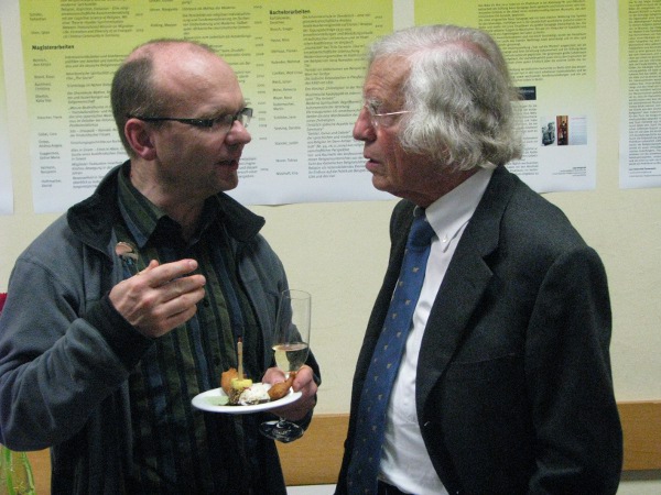 Nach einem Empfang mit einer "Werkschau" aus den letzten zehn Jahren religionswissenschaftlicher Studien gaben drei Alumni des Seminars Einblick in ihre eigenen Forschungen. "Es macht mich schon ein bisschen stolz", so Annette Wilke, "dass einer meiner Absolventen inzwischen schon selbst Professor ist. So wird im Laufe der Zeit die Lehrende zur Studentin der eigenen Schüler!" Den Gastvortrag zum Jubiläum hielt anschließend Prof. Dr. Kim Knott, eine international bekannte Religionswissenschaftlerin, die an der Lancaster University (UK) lehrt. Den Abschluss der Jubiläumsfeiern bildete die Party in den Räumen des Seminars, in dem Studierende, Lehrende, Kooperationspartner, Kolleginnen und Kollegen sowie Freunde und Bekannte noch einmal zusammen fanden.