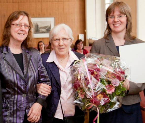 Verena Klein (im Bild ganz rechts) vom Gymnasium St. Mauritz in Münster hat den ersten Facharbeiten-Wettbewerb gewonnen, den die Katholisch-Theologische Fakultät der Uni Münster, die Schulabteilung des Bistums Münster, die Bezirksregierung Münster und die Katholische Akademie „Franz-Hitze-Haus“ ausgelobt hatten. Der Preis wurde am 8. Juli 2011 im Franz-Hitze-Haus verliehen. Die Schülerin der 12. Klasse darf sich über einen Geldpreis von 500 Euro freuen.