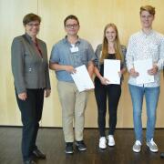 Mit Buchpreisen ausgezeichnet wurden Mona Herbstmann (Geschwister-Scholl-Gymansium, Stadtlohn), Maximilian Delsmann (Gymnasium Johanneum Schloss Loburg, Ostbevern), Lukas Seggewiß (St.-Pius-Gymnasium, Coesfeld) und Isabelle Harbeke (Mariengymnasium Warendorf).