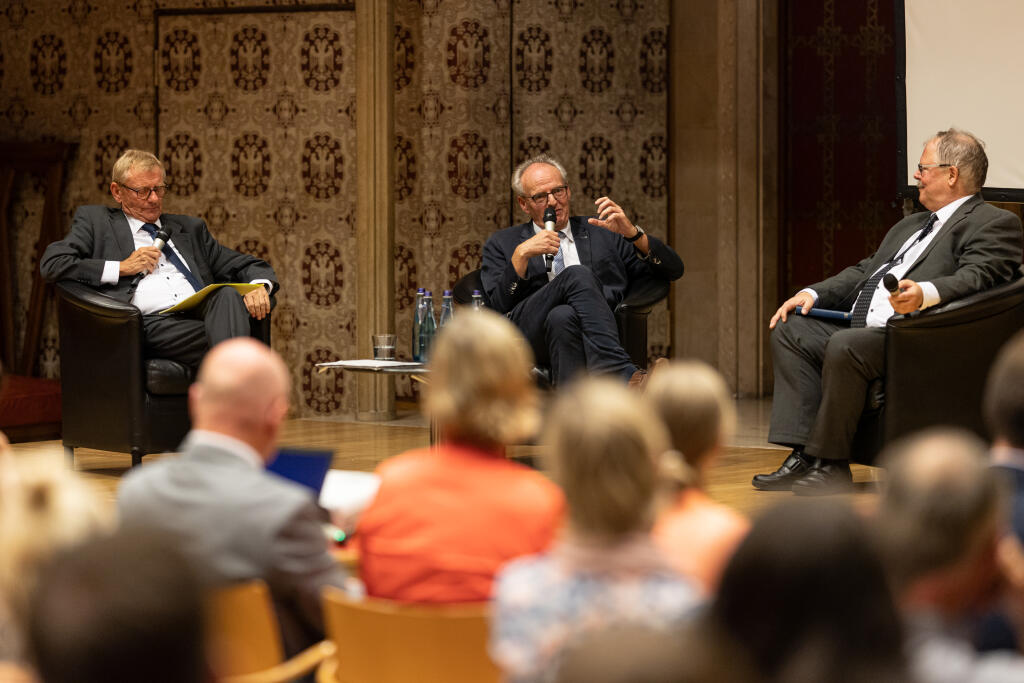 v.l.n.r.: Jana Haack, Prof. Dr. Michael Seewald, Katja Wolf (Oberbürgermeisterin Eisenach), Prof. Dr. Holger Strutwolf, Moderator Jörg Vins, Prof. Dr. Hubert Wolf, Markus Lewe (Oberbürgermeister Münster), Dr. Michael Pfister, Dr. Jan Graefe© exc - Peter Leßmann