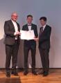 Weihbischof Dr. Gerhard Schneider und der Vorsitzende des Geschichtsvereins Prof. Dr. Dominik Burkard überreichen Lukas Redeker die Urkunde.© SMNKG - Jana Haack