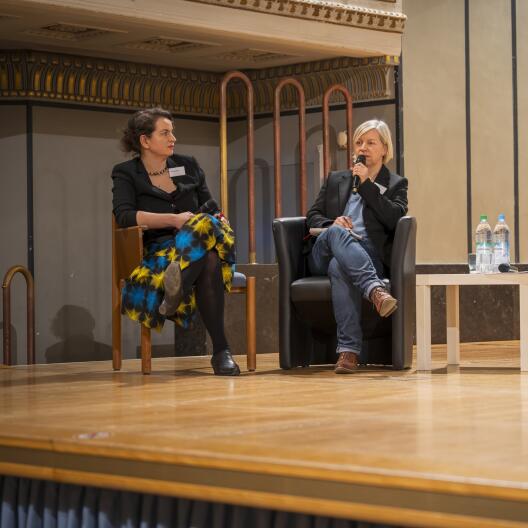 Als eine der Podiumsteilnehmer:innen war Prof. Dr. Regina Elsner zum öffentlichen Abends in der Großen Aula der Ludwig-Maximilians-Universität eingeladen. Die Keynote-Vorträge hielten der Historiker und Friedenspreisträger des Deutschen Buchhandels 2025, Prof. Dr. Karl Schlögel, und der ukrainische Journalist und Menschenrechtsaktivist Maxym Butkevych, der von 2022 bis 2024 über zwei Jahre in russischer Kriegsgefangenschaft war. Auf dem anschließenden Podium diskutierten beide gemeinsam mit Prof. Dr. Katrin Boeckh (Universität Regensburg), Dr. Franziska Davies (Leibniz-Zentrum für Zeithistorische Forschung Potsdam), Prof. Dr. Regina Elsner, Kardinal Reinhard Marx und dem polnischen Botschafter Jan Tombinski über die Verantwortung der Wissenschaft und der Kirchen angesichts der strategischen Desinformation Russlands über den von ihm geführten Angriffskrieg.