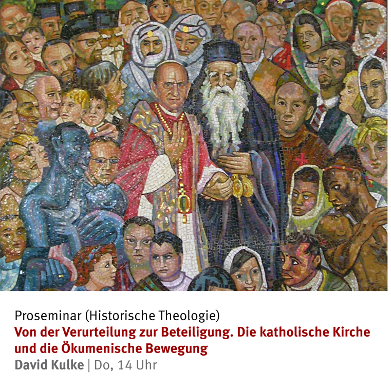 David Kulke führt im Proseminar „Von der Verurteilung zur Beteiligung. Die katholische Kirche und die Ökumenische Bewegung“ in die bemerkenswerte Entwicklung der katholischen Ökumene ein – von der frühen Ablehnung der Ökumenischen Bewegung bis zur Öffnung des Zweiten Vatikanischen Konzils und der heutigen aktiven Beteiligung an ökumenischen Dialogen.