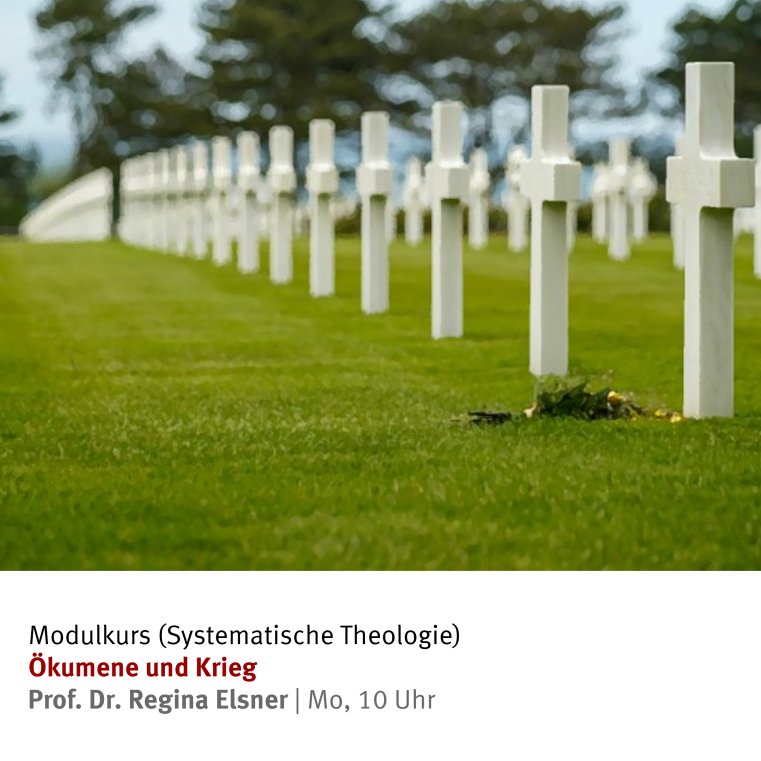 Zwei von Prof. Dr. Regina Elsner gehaltene Modulkurse thematisieren das Verhältnis von Ökumene und Krieg sowie die Stellung der orthodoxen Kirchen zu den Menschenrechten. Ein Hauptseminar, welches Prof. Dr. Regina Elsner zusammen mit Prof. Dr. Simone Sinn von der Evangelisch-Theologischen Fakultät anbietet, verfolgt die Entwicklung ökumenischer Sozialethik von der Weltkirchenkonferenz in Stockholm 1925 bis heute.