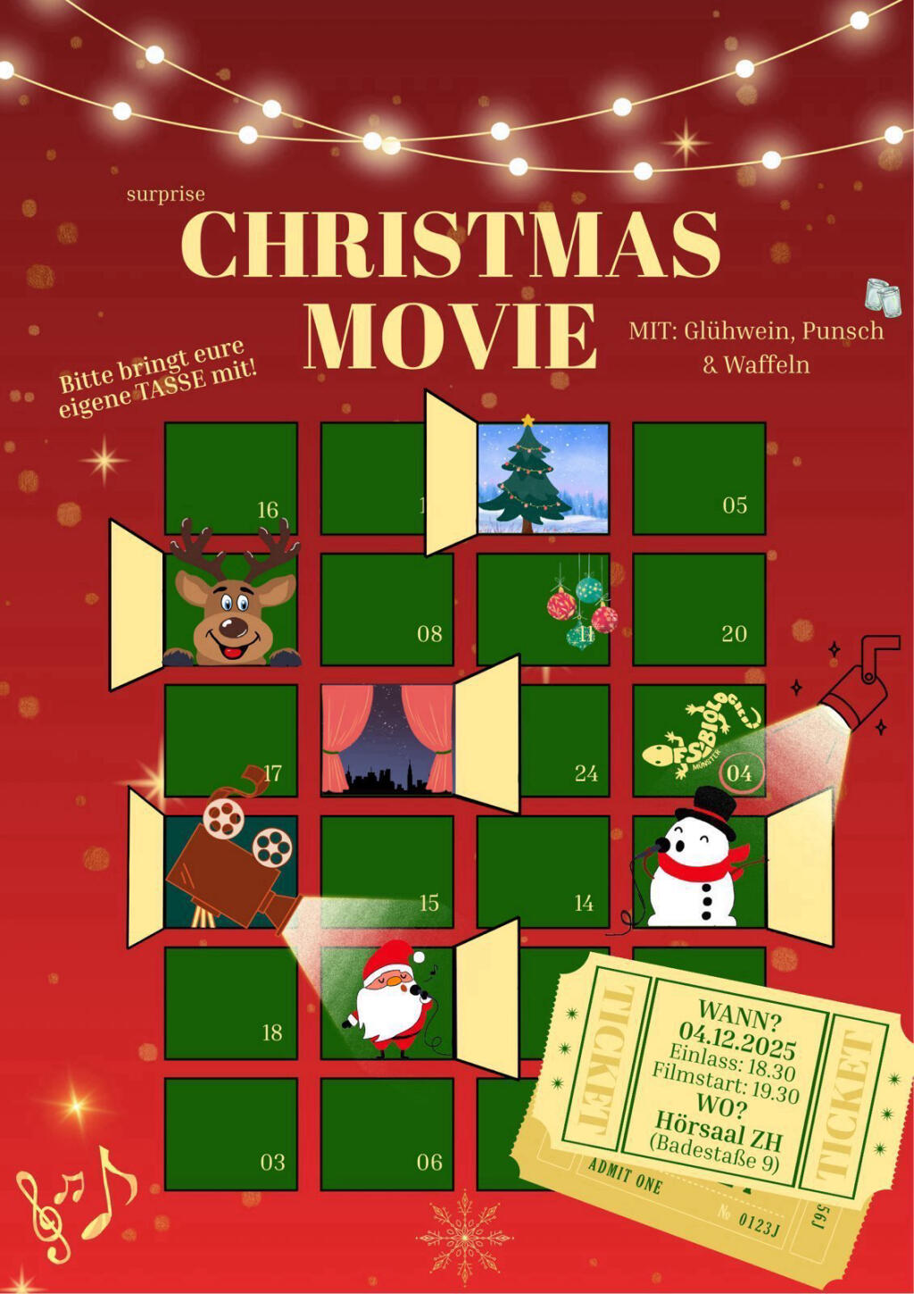 Am Donnerstag den 04.12. schauen wir wie jedes Jahr gemeinsam einen Weihnachtsfilm 🎥🎄. Einlass ist um 18:30 im ZH in der Badestraße und wir starten dann um 19:30.  Wir freuen uns auf einen gemütlichen Abend mit euch bei Punsch, Glühwein und Popcorn 🍿