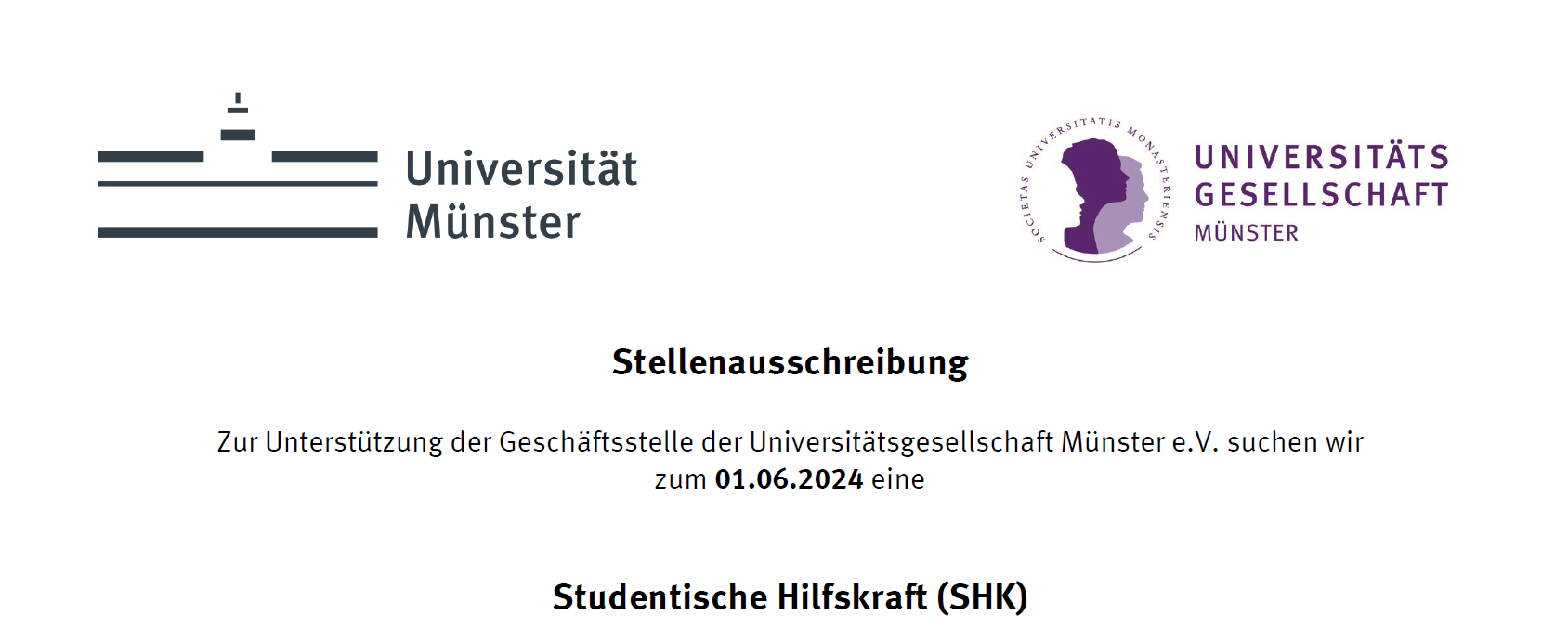 Ausschreibung des Förderpreises der Universitätsgesellschaft Münster 2025