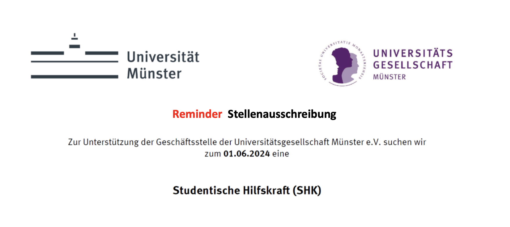 Reminder Ausschreibung des Förderpreises der Universitätsgesellschaft Münster 2025