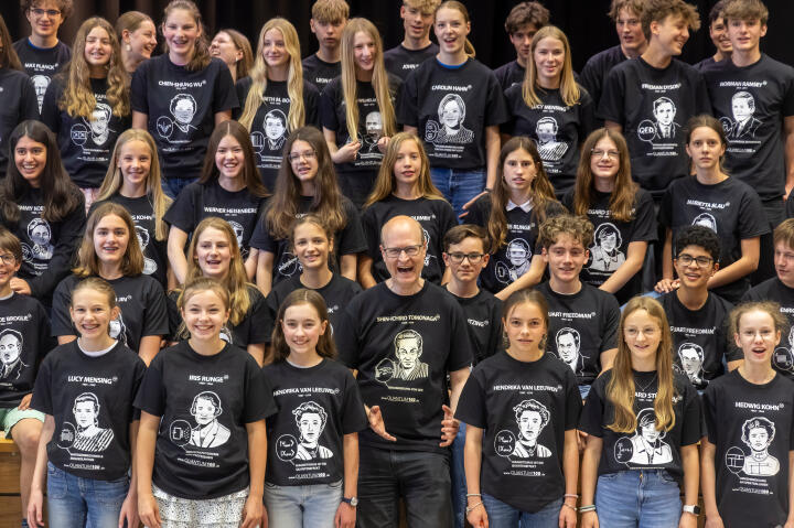 Den musikalischen Höhepunkt des Tages bildet um 19.30 Uhr das internationale Abschlusskonzert „Fundamental Interactions“ in der Großen Halle Münsterland. Über 200 Mitwirkende aus Münster – darunter das Studentenorchester Münster, Chöre des Gymnasiums Paulinum sowie der Chor Piano 22/30 – stehen gemeinsam mit den Profimusikerinnen und -musikern des japanischen Orchesters N’SO Kyoto auf der Bühne. Das Werk des französischen Komponisten Yannick Paget, erweitert um einen eigens für Münster verfassten Text des britischen Lyrikers Chris Mosdell, thematisiert die Geschichte von 100 Jahren Quantenphysik. Begleitet wird das Konzert von einer visuellen Live-Performance des Pariser Künstlers Sagar Patel. Die Moderation übernimmt Jacob Beautemps (Breaking Lab).