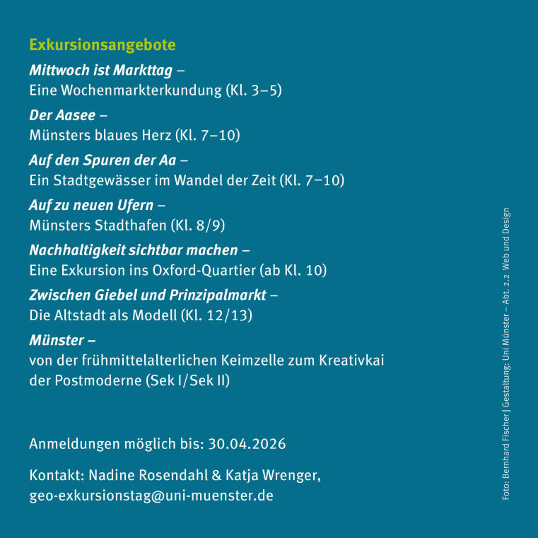 Kontakt: Nadine Rosendahl & Katja Wrenger, geo-exkursionstag@uni-muenster.de