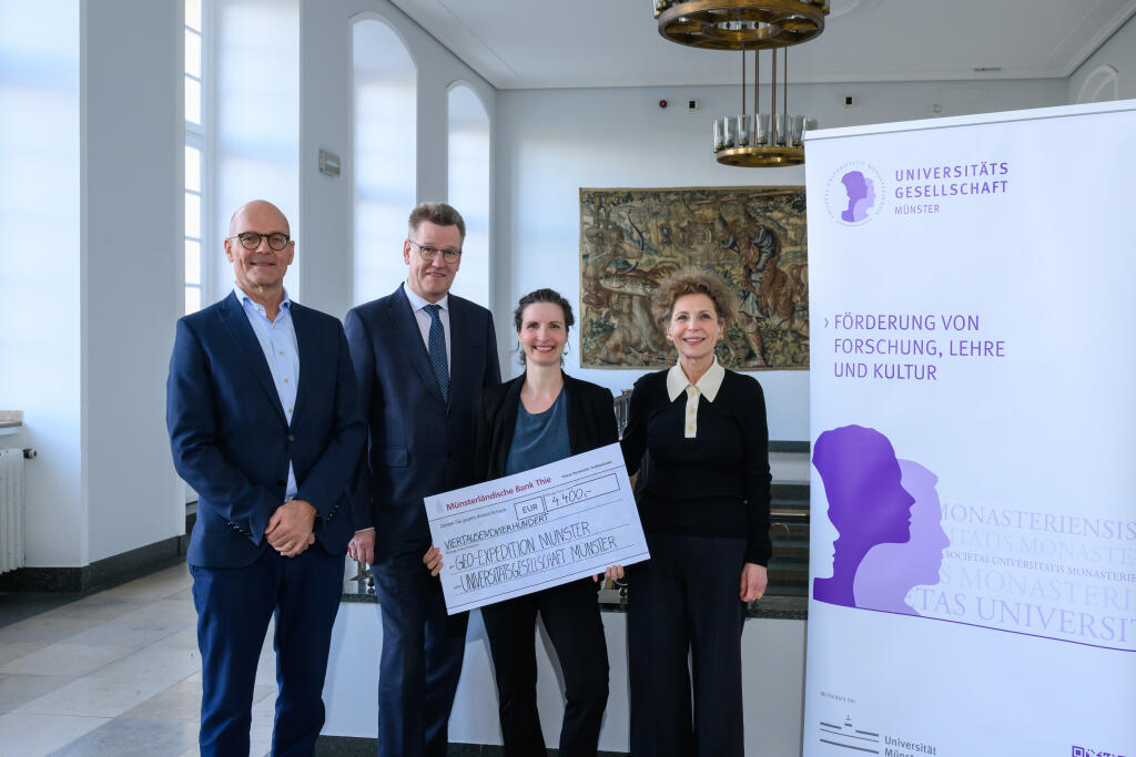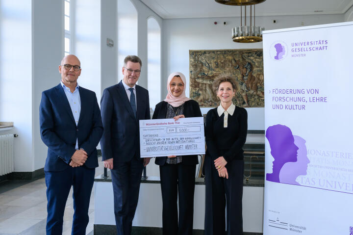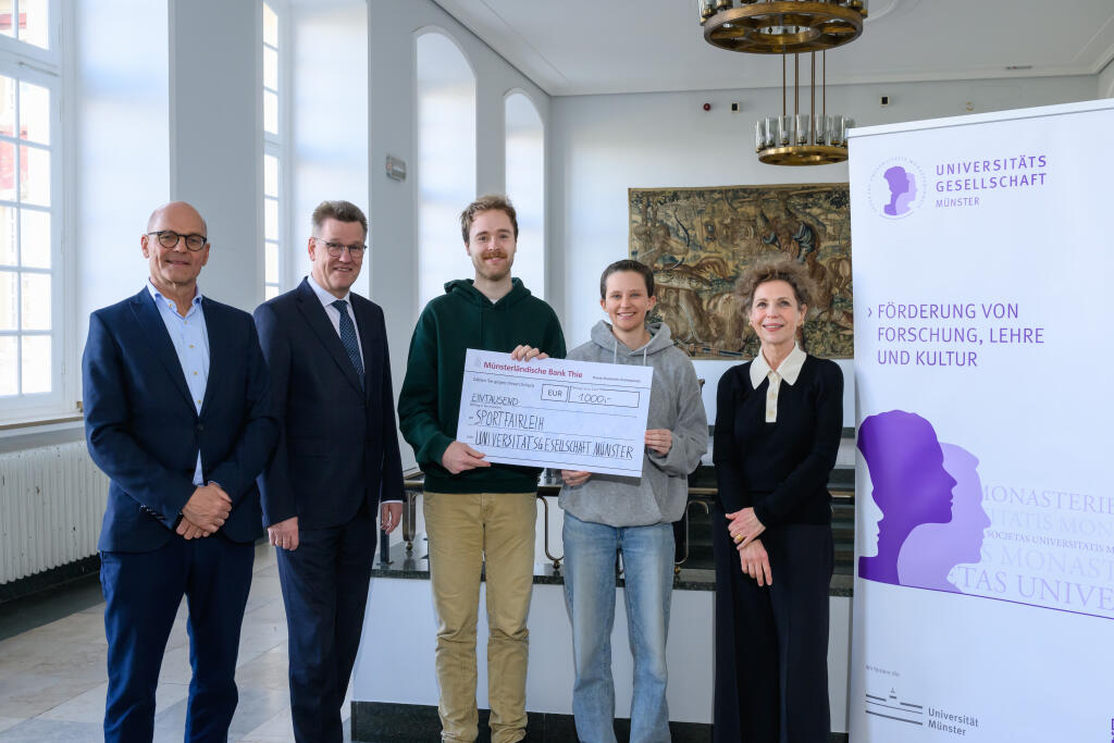 Die Universitätsgesellschaft Münster vergibt im Jahr 2026 Fördermittel für insgesamt 15 Vorhaben aus den Bereichen Forschung, Lehre, Kultur und studentisches Engagement. Die symbolische Scheckübergabe fand im Schloss Münster im Rahmen einer Feierstunde statt.