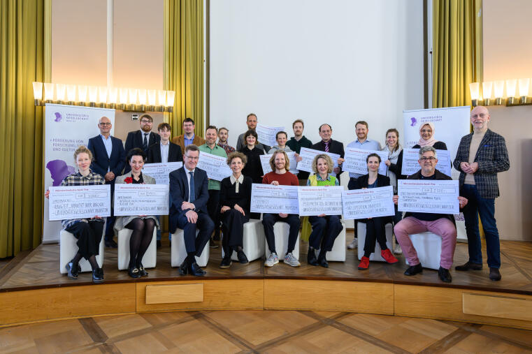 Der Vorstand der Universitätsgesellschaft und Vertreter des Rektorats überreichten den Projektverantwortlichen die Schecks und gratulierten herzlich zur Förderung.