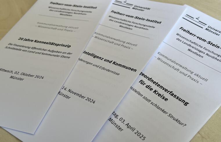 Die Vortragsveranstaltungen des Freiherr-vom-Stein-Instituts dienen dem Erfahrungsaustausch zwischen Wissenschaft und kommunaler Praxis. Sie haben eine lange Tradition. Im Rahmen der Vortragsreihe "Kommunalverwaltung aktuell – Wissenschaft und Praxis" fanden bisher folgende Veranstaltungen statt: