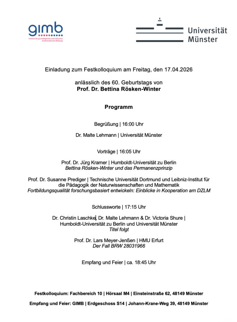 Anmeldung zum Festkolloquium Name: * E-Mail-Adresse: * I am attending the Festkolloquium.I am attending the following celebration.I am coming alone.I'm bringing other people with me (please submit number of People).Number of additional people:SendReset