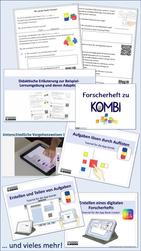 Die App Kombi ermöglicht Lernenden der Grundschule und Sekundarstufe I, kombinatorische Problemstellungen digital materialgestützt zu lösen. Mit der Funktion 'Arbeitsmittel' kann Kombi für die Bearbeitung von Aufgaben aus Schulbüchern und anderen Quellen genutzt und mittels der Funktion ‚Aufgaben‘ können voreingestellte kombinatorische Aufgabenstellungen auf verschiedenen Schwierigkeitsgraden gelöst werden. Zusätzlich besteht für die Lehrkraft und für Lernende die Möglichkeit, Aufgaben in Kombi selbst zu erstellen bzw. an die Lerngruppe anzupassen. Die erstellten Aufgaben können per QR-Code bereitgestellt und anschließend von anderen Nutzenden eingescannt und gelöst werden.
