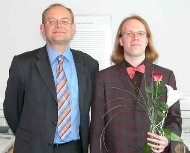 Laureate Zachary Quinkert (right) and Prof. Dr. Hellmut Eckert (Chair of the Graduate School of Chemistry).