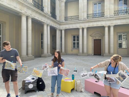 Im Rahmen einer Lehrveranstaltung haben Studierende im Sommersemester 2022 geographische Schülerexkursionen für Berlin konzipiert und diese mit Schülerinnen und Schülern eines Düsseldorfer Gymnasiums vor Ort durchgeführt und evaluiert. Schwerpunkte der geographischen Schülerexkursionen bildeten in diesem Jahr ausgewählte Straßen und Sehenswürdigkeiten wie der Kurfürstendamm, die Karl-Marx-Allee, der Pariser Platz und das neue Humboldtforum. Bei Interesse an einzelnen Exkursionskonzepten melden Sie sich gerne bei Herrn Prof. Dr. Michael Hemmer.
