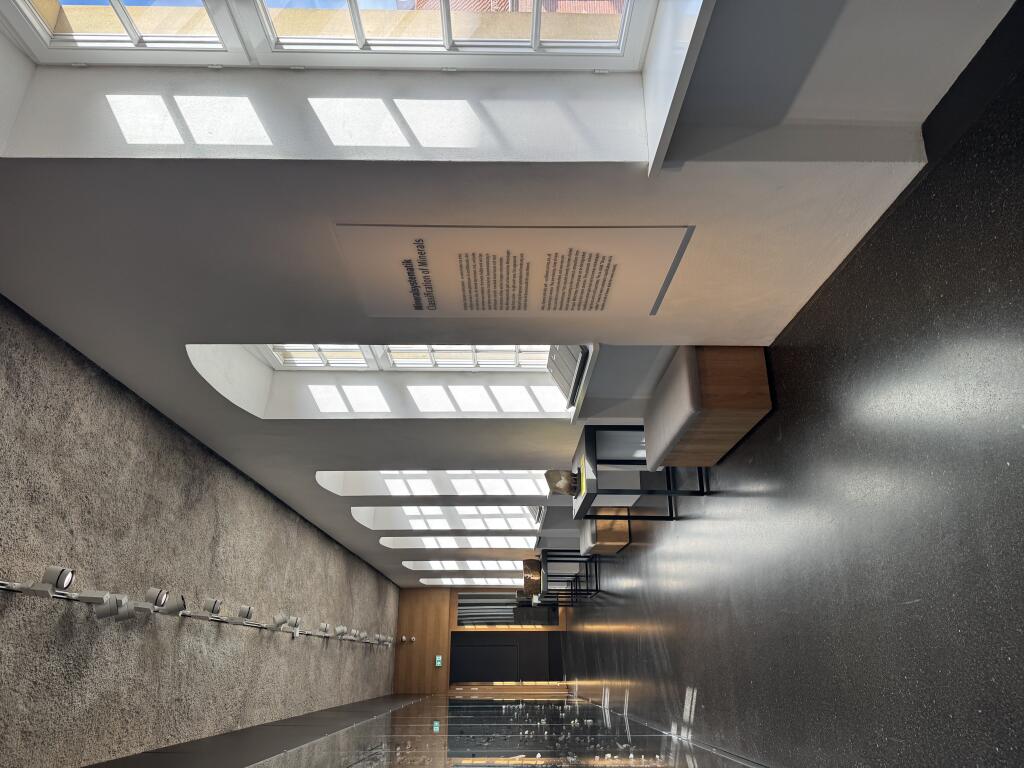 "Wie plant man eine Ausstellung? Wie funktioniert barrierefreie Gestaltung? Und wie kreiert man durch Farben, Licht und Formen die passende Stimmung? Im Rahmen des Präsentationstechnik-Unterricht haben die Schüler*innen die faszinierende Ausstellung des Geomuseums besucht, um die Welt des Ausstellungsdesigns zu erkunden. Nach einer ausführlichen Einführung in das grundlegende Ausstellungskonzept konnten wir in dem Museum neben spannenden Exponaten auch außergewöhnliche Ausstellungsideen bestaunen und zahlreiche interaktive Stationen ausprobieren. Hören, Fühlen und Mitmachen - all das ist in dem Museum möglich. Während der Führung wurde der Blick der Schüler*innen stets auf die gestalterischen Entscheidungen gelenkt. Vom Urknall bis zur Eiszeit: Jeder Raum hat seine ganz eigene Atmosphäre. Durch stimmungsvolles Licht, passende Farben und abgestimmtes Design taucht man in vergangene und verborgene Welten ein. Die Schüler*innen waren begeistert! Das Geomuseum zeigt, wie modern, durchdacht und erlebbar Wissen sein kann."