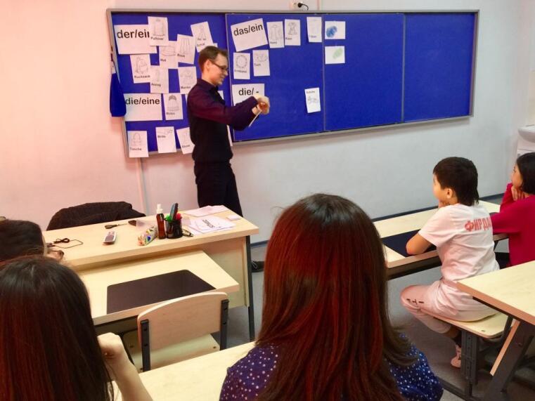Zusätzlich zur Praktikumstätigkeit an der NUUz wirkte ich auch aktiv beim Ausbau der Praktikumskooperation mit, indem ich auch an der Smart School unterrichtete, einer privaten Ganztagsschule, in welcher Russisch die Unterrichtssprache ist. Der Bau der Schule begann erst im April 2016, eröffnet wurde sie im September desselben Jahres; das monatliche Schulgeld beläuft sich auf etwa 300 USD. Wir auch an der NUUz ist man hier sehr an deutschen Muttersprachlern für den DaF-Unterricht interessiert. Unterrichtet werden die Jahrgangsstufen eins bis neun. Ich unterrichtete in den Stufen zwei bis fünf und konnte somit neben der Tätigkeit an der NUUz weitere wichtige Erfahrungen in einem neuen Unterrichtsfeld sammeln.